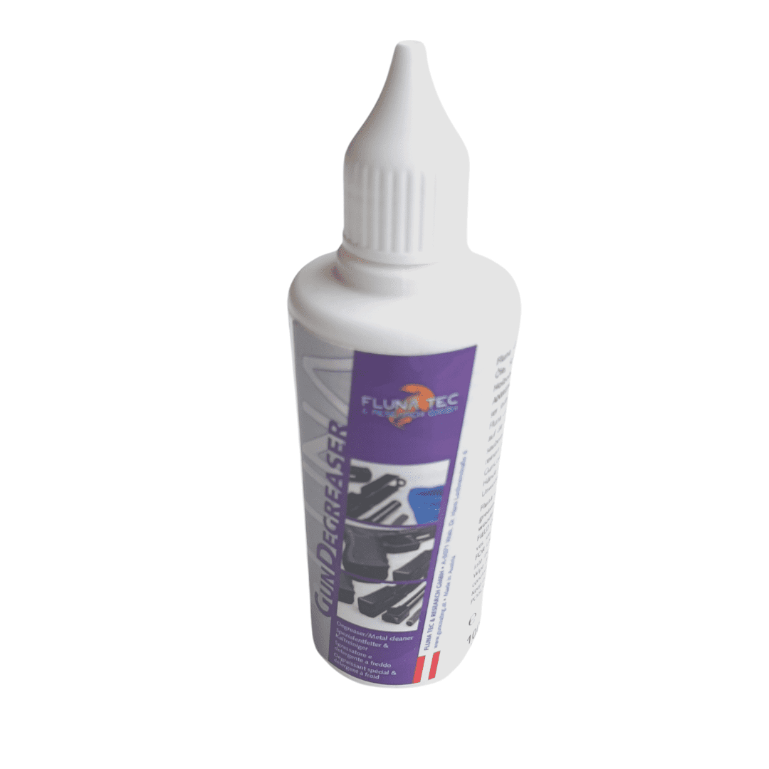 Fluna Tec Gun Degreaser on aseen erikoispuhdistusaine rasvojen, öljyjen ja vahojen poistamiseen. Rasvanpoistaja puhdistaa ruuti- ja palojäämät, pölyn, lian jne. Se on tarkoitettu kaikenlaisille kivääreille, pistooleille ja veitsille. Toimii erinomaisena esikäsittelynä ennen Fluna Gun Coating -pinnoitteen käyttämistä.
