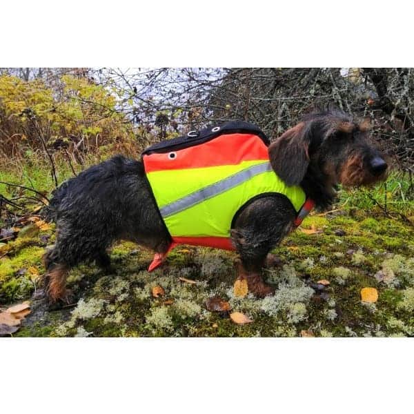 KarDog Saga on kevyt kelluttava huomioliivi metsästyskoiralle.