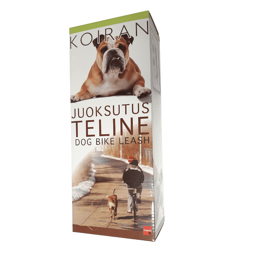 Koiran juoksutusteline polkupyörään. Koiran ulkoilutus polkupyörällä on helppoa ja turvallista pyöräilysettiä apuna käyttäen.