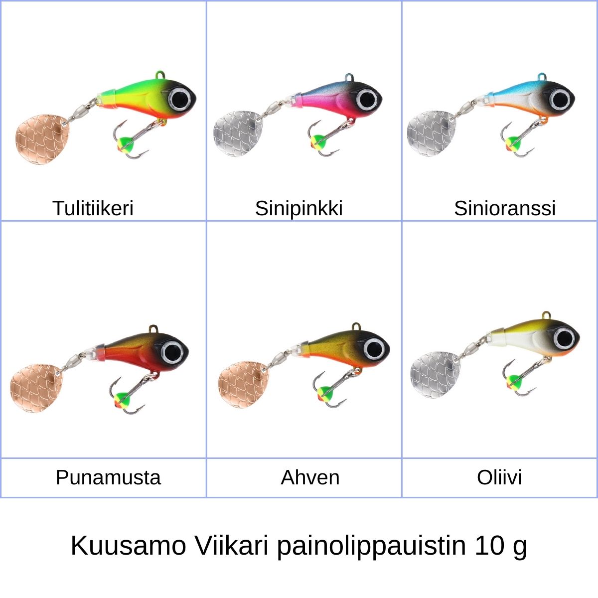 Painolippauistin Kuusamo Viikari on ahvenen ja jalokalojen heittokalastukseen kehitetty pitkäheittoinen pikkuviehe, jolla on voimakas ahventa houkutteleva runkouinti ja hännässä eläväisesti välkähtelevä lippa. Kalasta suoralla kelauksella tai jigityyliin pompottamalla.