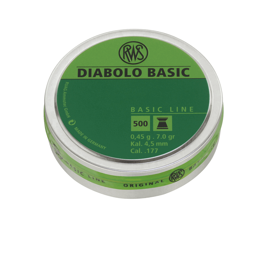 RWS Diabolo Basic 0,45 g luoti sopii hyvin 10 metrin ampumamatkalle ilmakivääri- ja ilmapistooli ammuntaan ja ampumahiihtoon.