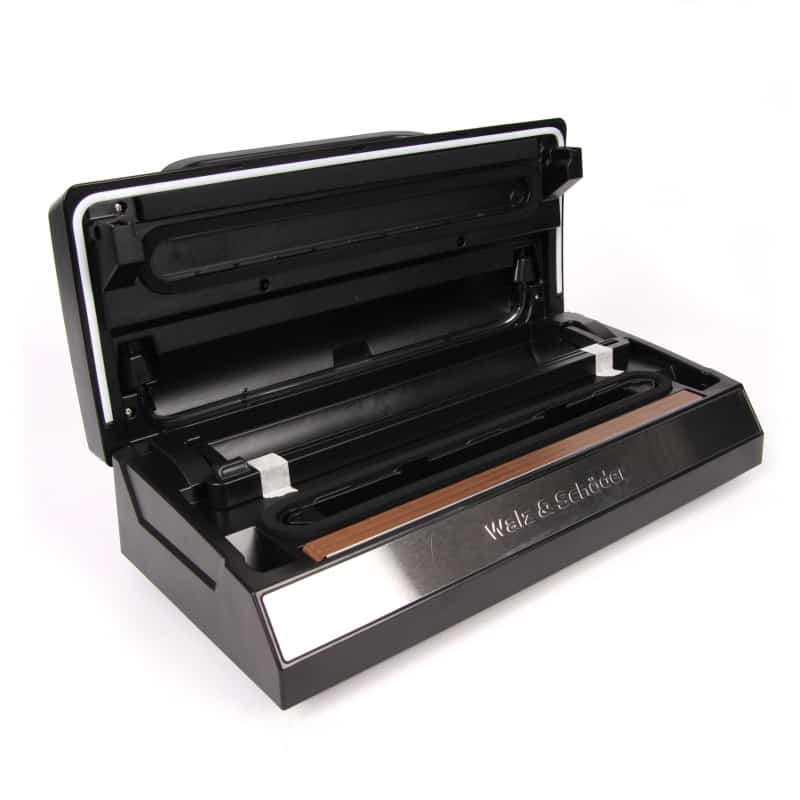 Walz Schöder 5181 Pro tyhjiöpakkauskone eli vakuumikone edustaa kotikäyttöön tarkoitettujen vakuumikoneiden tehokkaampaa linjaa. Laitteessa on suuri imuteho, -0.9bar, jonka saa aikaan tehokas pitkäiskuinen pumppu. Pumppu on erittäin kestävä sen materiaalien ja rakenteen ansiosta mikä takaa koneelle pitkän käyttöiän. Pussin suljenta on erittäin luotettava koska koneessa pussi saumataan tuplasaumaus periaatteella. Tässä kaksi vierekkäin asetettua saumauslankaa saumaa pussin suun tiiviiksi, joka toisin sanoen tupla varmistaa sen, ettei ilmaa pääse tyhjiöpakkaukseen.